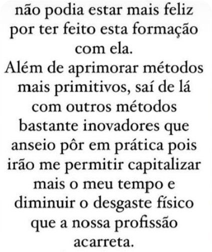 Hoje, sou formadora e tenho o orgulho de já ter acompanhado a evolução de dezenas de alunas, que saíram das minhas formações com resultados extraordinários, clientes fiéis e os seus próprios negócios.